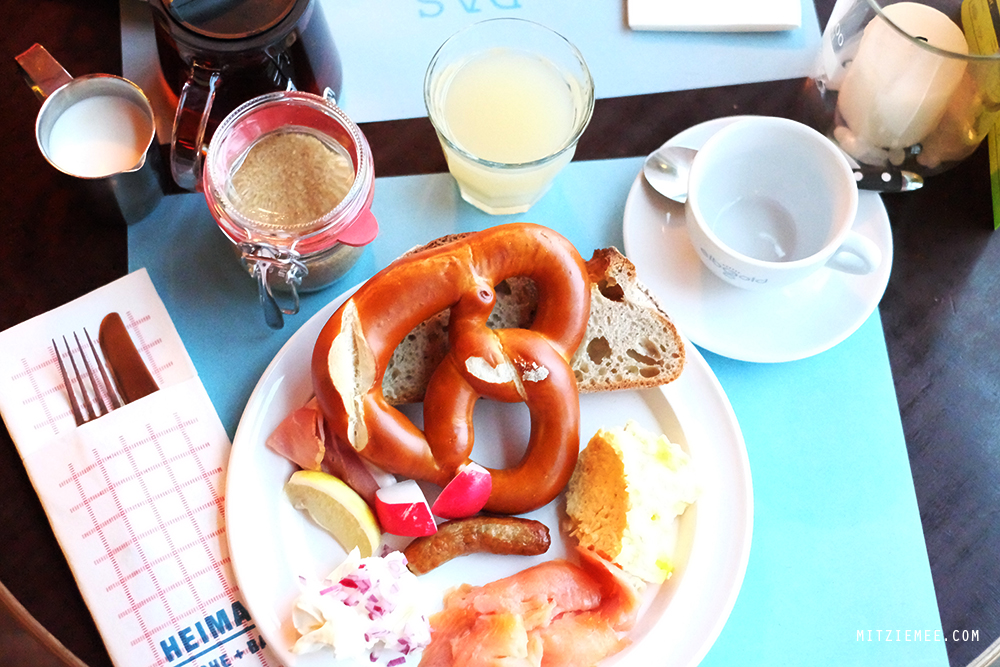 The hotel restaurant, Heimat, served a generous German breakfast with fresh pressed juice and all sorts of local specialties. It was an impressive buffet, and every dish felt carefully prepared. Crisp bread, pretzels, cold cuts, cheeses, and warm options. Each morning in Hamburg, I started with a pretzel topped with smoked salmon and scrambled eggs, along with my own pot of tea. It was the kind of breakfast that makes getting up feel like a treat.