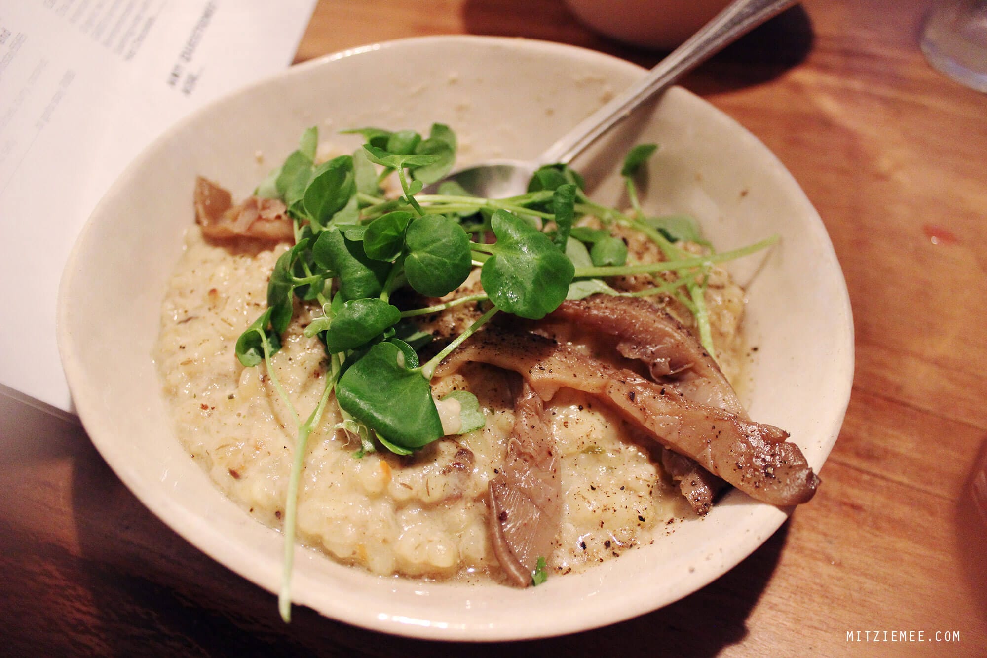I had bygotto (a Nordic version of risotto made from pear barley instead of Arborio rice) with oyster mushrooms and Parmesan cheese. The risotto references were imminent, and if I had been blindfolded and served the food, I probably wouldn’t have been able to tell the difference. It was rich and creamy and the serving so generous that halfway in, I started doubting whether I would be able to finish it. I ate it all, but afterwards, I was so full that I had to skip my initial plan on trying one of the dessert porridges. Stine had congee (Asian rice porridge) with chicken, ginger and peanuts. It was very tasty and so different from anything else, and she really liked it.