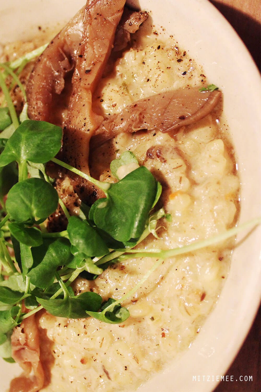 I had bygotto (a Nordic version of risotto made from pear barley instead of Arborio rice) with oyster mushrooms and Parmesan cheese. The risotto references were imminent, and if I had been blindfolded and served the food, I probably wouldn’t have been able to tell the difference. It was rich and creamy and the serving so generous that halfway in, I started doubting whether I would be able to finish it. I ate it all, but afterwards, I was so full that I had to skip my initial plan on trying one of the dessert porridges. Stine had congee (Asian rice porridge) with chicken, ginger and peanuts. It was very tasty and so different from anything else, and she really liked it.