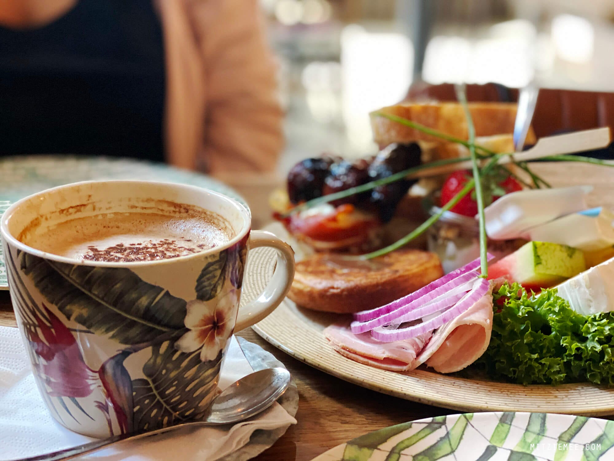 Today, Sister T and I went for brunch at Mums, which is a quaint little café near the marina in Fredericia. We were there at 10, when they opened, and after browsing the menu, which we already had checked out online, Trine decided on the brunch platter, and I went for the American pancakes.