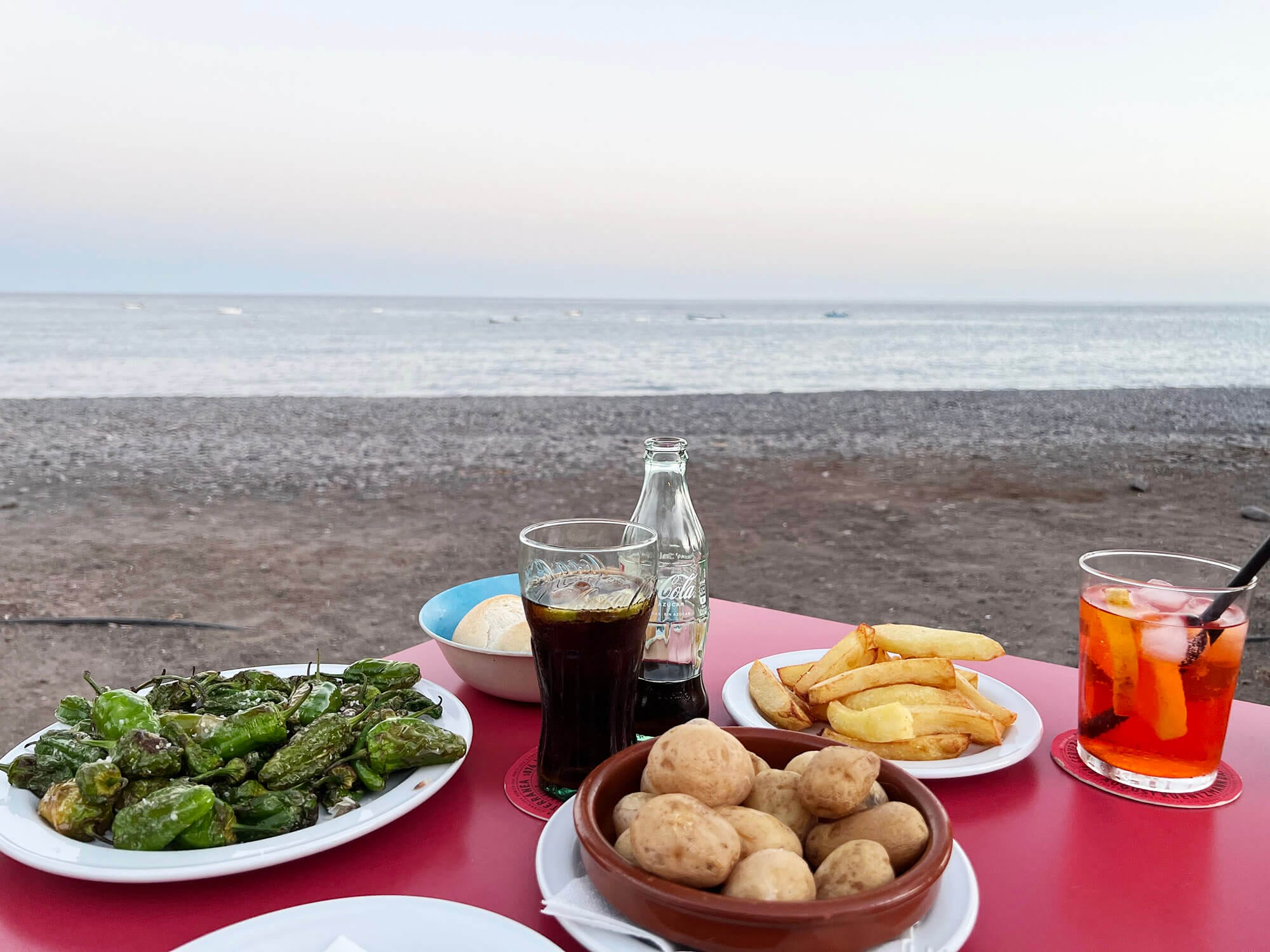 We wanted to get the most out of our last day with a rental car, so for dinner, we drove down to La Lajita, which is a small village on the other side of the island. We found a cozy little restaurant, Restaurante Ramón, right by the beach, and sat down for dinner. Both the restaurant and the village seemed a lot less touristy than most of the other places we have been to, and food was simple, but delicious.