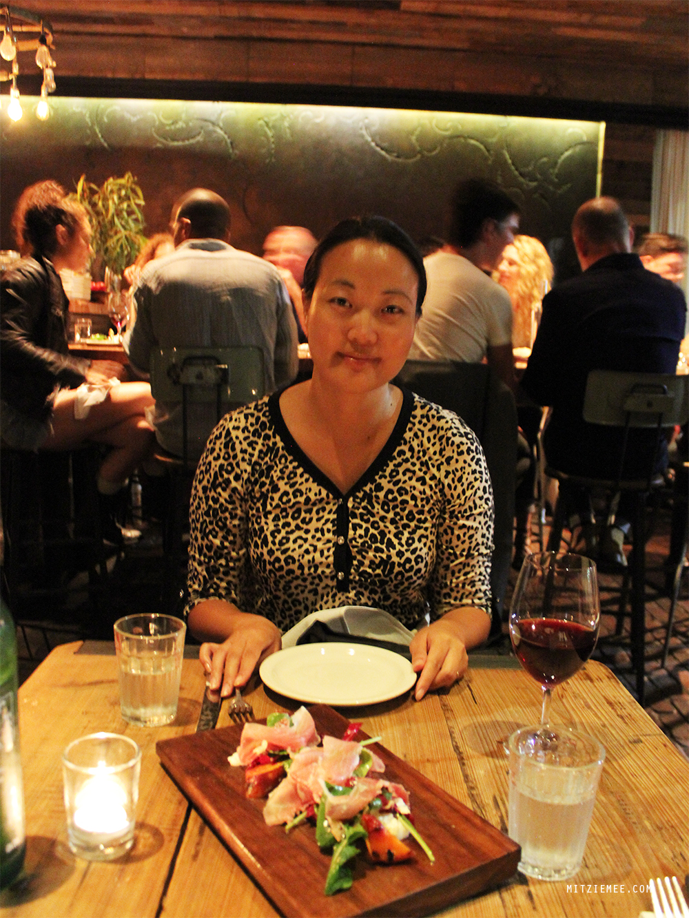 Thumbs up for a restaurant that dares to put its foot down and stand up for the menu in its original shape. AC immediately fell for the pizza with housemade chorizo, while I was tuned in on the crispy duck confit with figs and sherry. The burrata with grilled peaches and prosciutto, however, was something we both could agree upon. Burrata is a kind of creamy mozzarella and apparently, it is very popular in California. I think Din Tai Fung (the Taiwanese dumpling restaurant) is the only place we have dined in LA, where burrata hasn’t been on the menu.