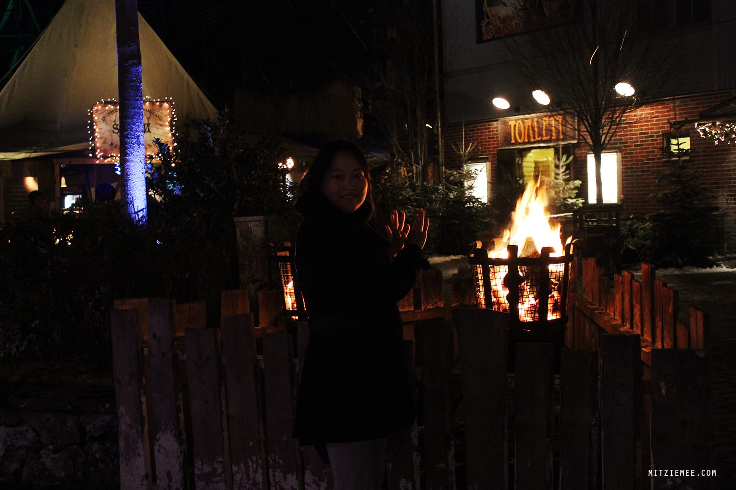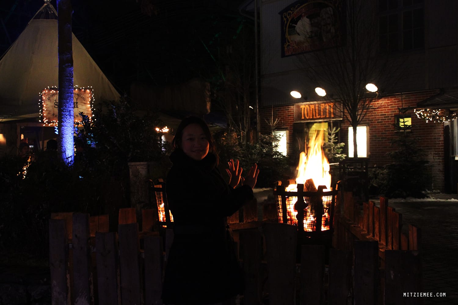 The last place we visited was Lapland, and both Rikke and I agreed that it was the coziest area in Liseberg. Bonfires provided sparse lighting as well as warmth for cold hands, and young guys with Northern Swedish dialect and charm tempted us with samples of dried reindeer, moose and bear. I really had no original intention of leaving Liseberg with a piece of edible Swedish wildlife, but somehow I ended up with a package of dried moose. Wonder who will get that for Christmas…