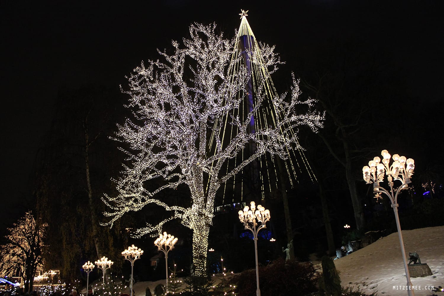 One of Liseberg’s landmarks is the 116-meter high Liseberg Tower. In December, the tower, which is also a really wild free-fall attraction, is decorated with luminous cables, so it looks like a giant Christmas tree.