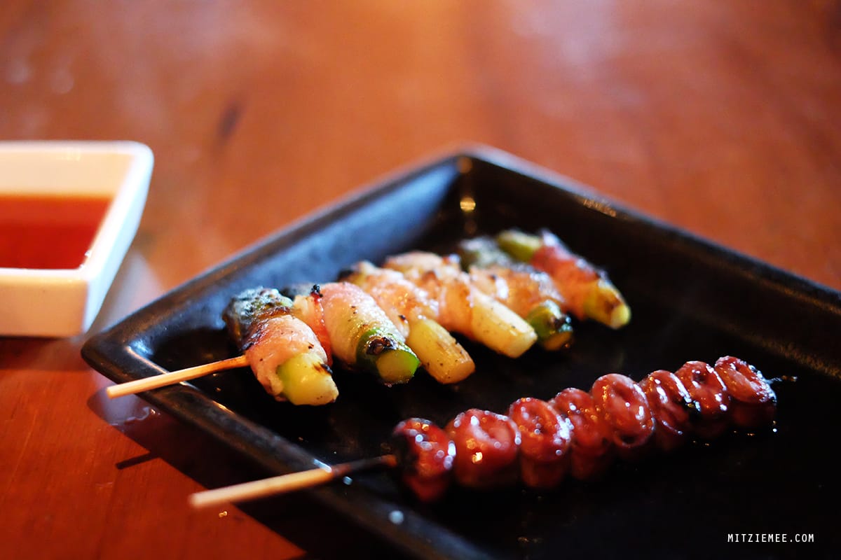 The food is served to share and depending on your appetite, you will probably need 2-3 small plates or 5-6 skewers and a salad, so expect to spend around $30-40 + tips on food (and more if you only eat sushi). There is a spacious and popular bar inside, so grab a cocktail to kick off the digestion, before you leave.