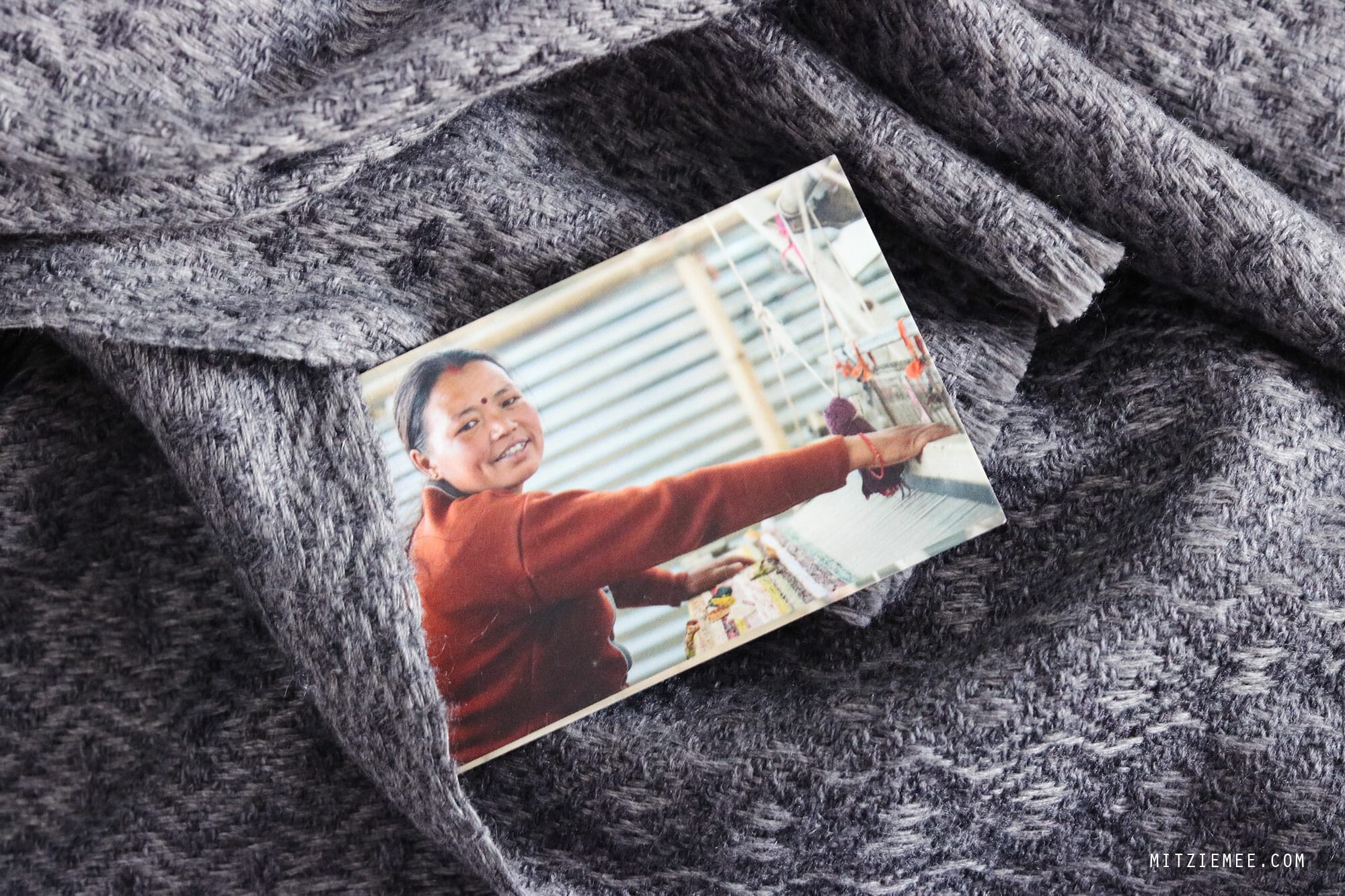 The women at LWH make a wide variety of products, but it was especially the handwoven scarves that caught my attention, so together we designed the Amazing Gray wrap for Mitzie Mee. The wrap is a mix of cashmere, wool and cotton, which makes it warm and very soft.