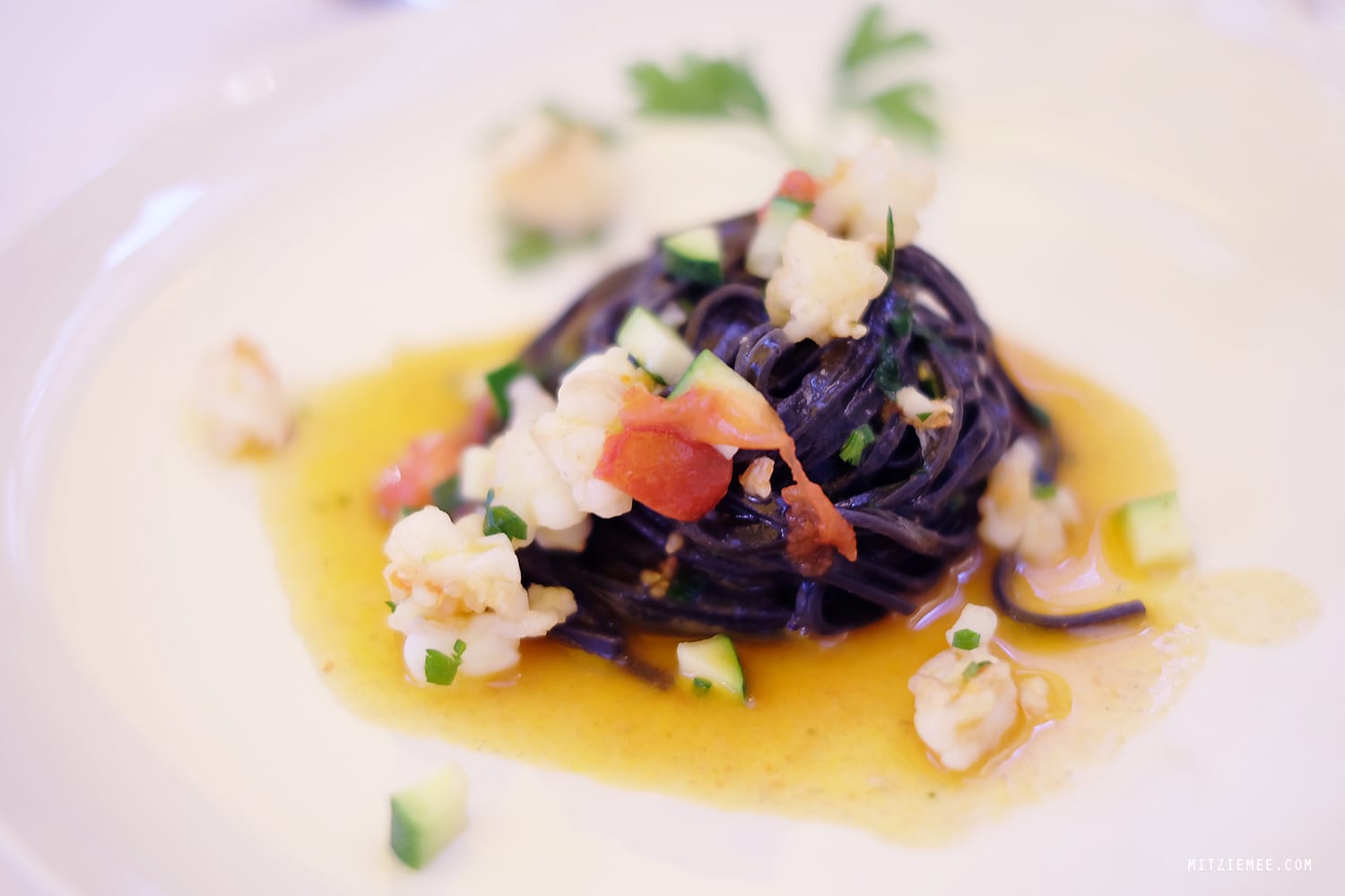 Tagliatelle with squid ink and scampi: Beautiful dish with a great flavor. The tagliatelle was just perfect.