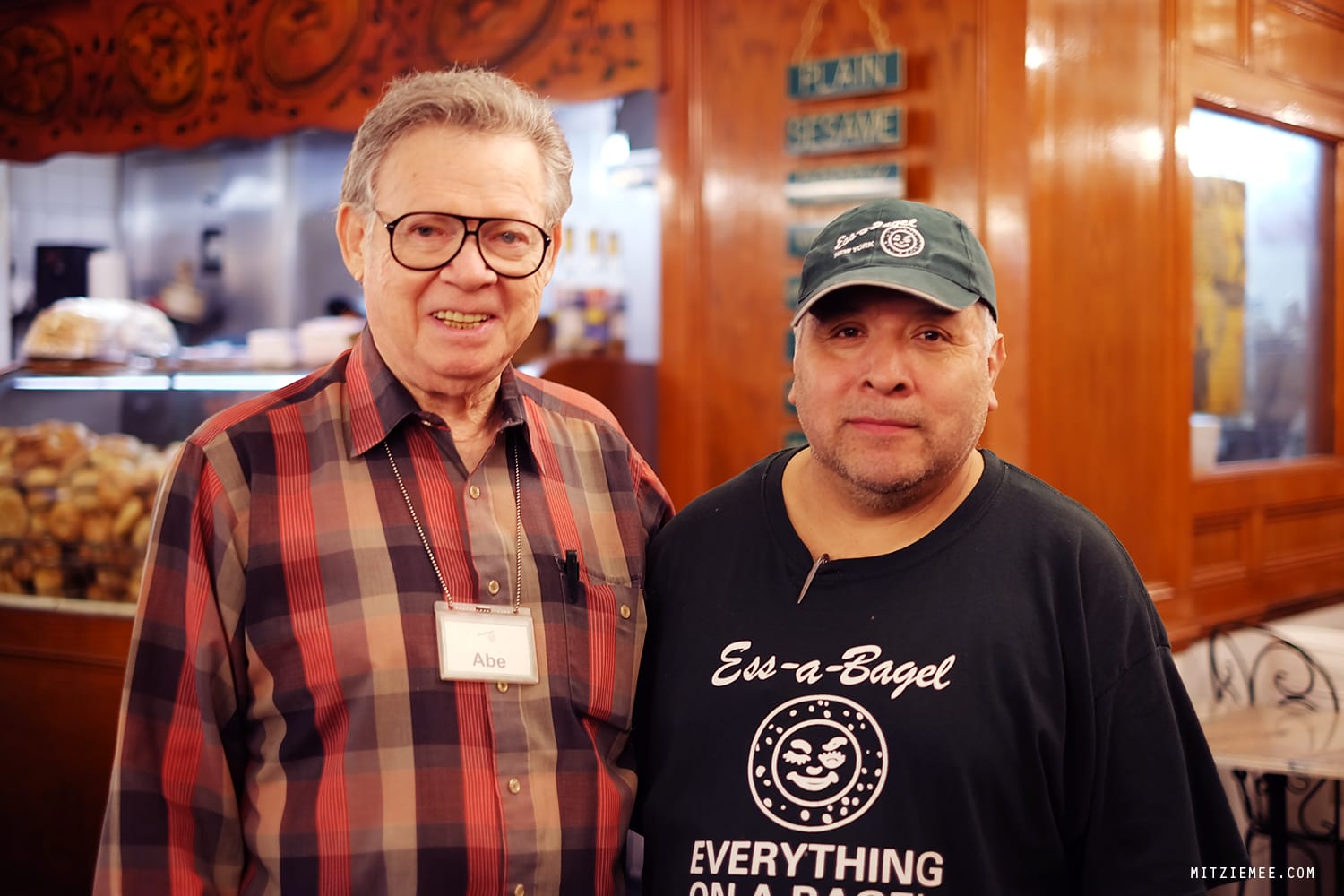 I sat down and started eating my Nova+cream cheese bagel, when suddenly an elderly gentleman appeared with a nametag saying “Abe”. He didn’t want to be in the photo alone, so one of the other staff members agreed to join him.
