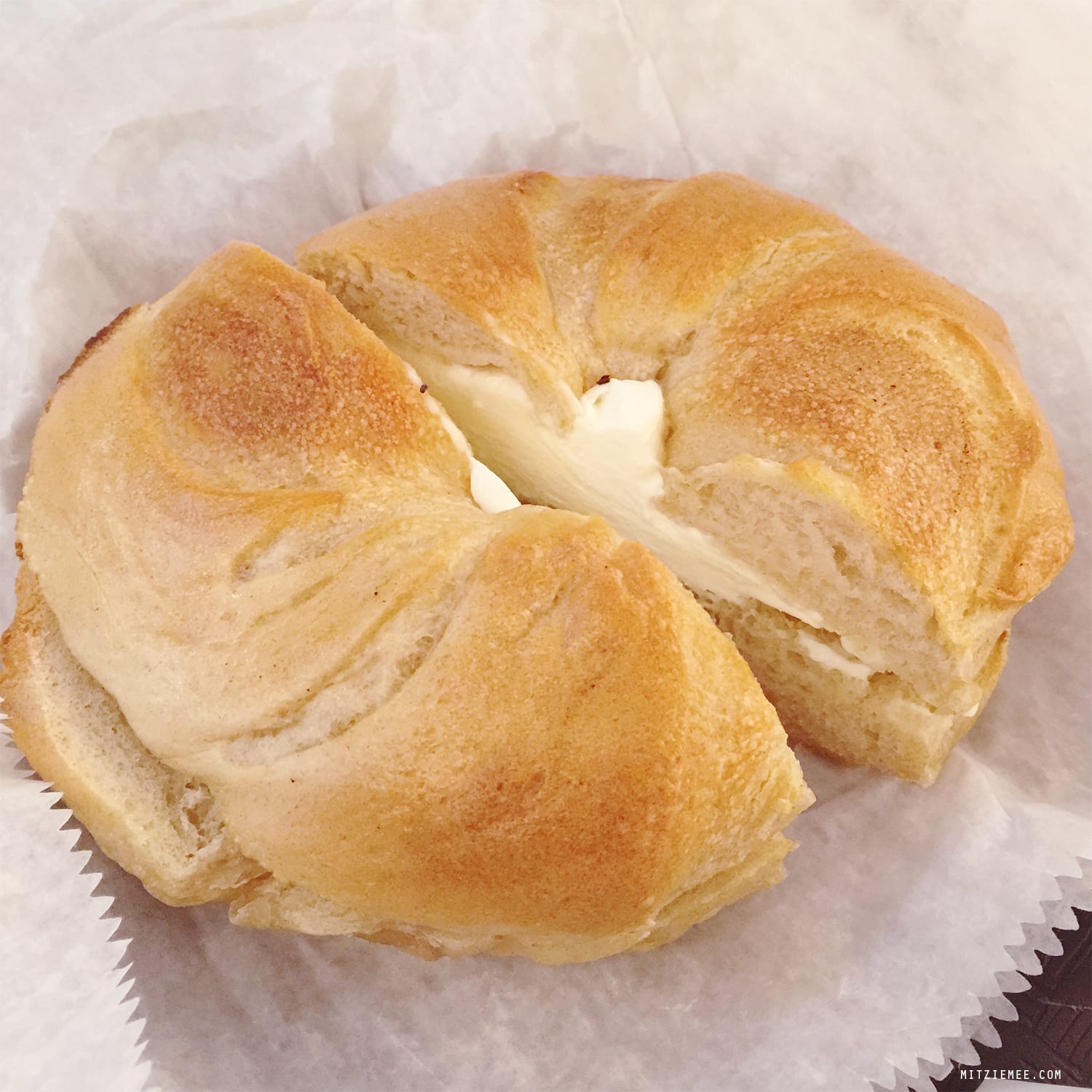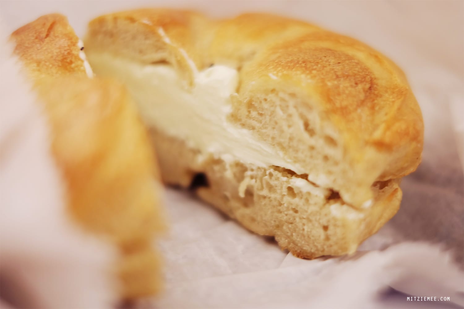 The bagels at Ess-a-Bagel are bigger than the average New York bagel and also a bit chewier, almost like Italian bread. Ordering two bagels therefore turned out to be serious overkill, as I had troubles just finishing one. The plain bagel with cream cheese was therefore wrapped up again after photographing, and saved for lunch later.