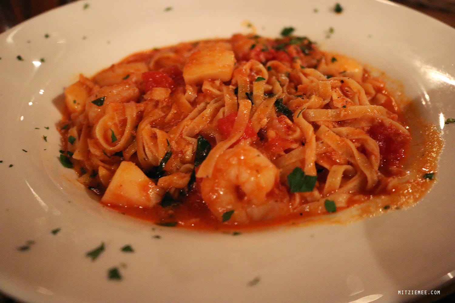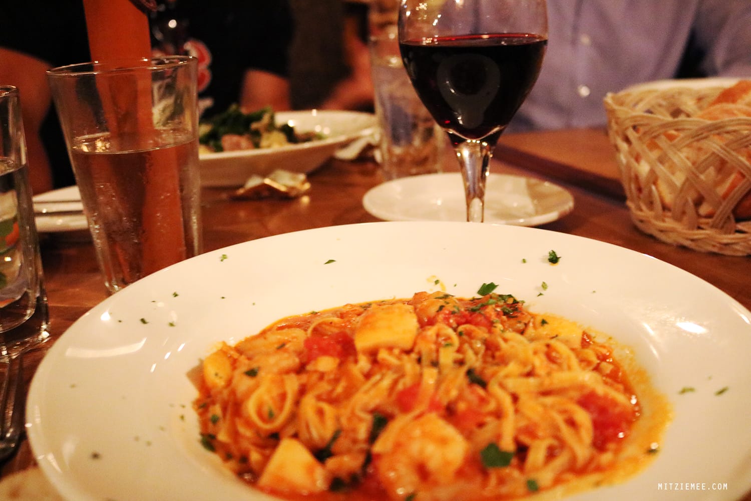 I had a seafood linguine which was perfectly executed and tasted terrific. I asked for a glass of red wine, but I forgot to specify, that I wanted a house wine. The wine was really good, so I was a little worried about the price tag. Turned out that glass was only $8. I should visit Little Italy more often.