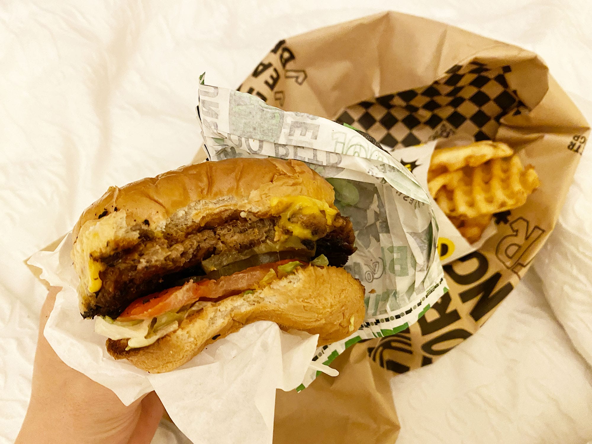 Jerrell’s menu only features three different kinds of burgers, plus a couple of different shakes and fries. I decided to order the Lil’ BETR, which is the smallest burger on the menu but still of a good size for a late night snack. Jerrell’s has a few chairs and tables outside, but I opted to take my burger home for a late-night feast in the comfort of my bed.