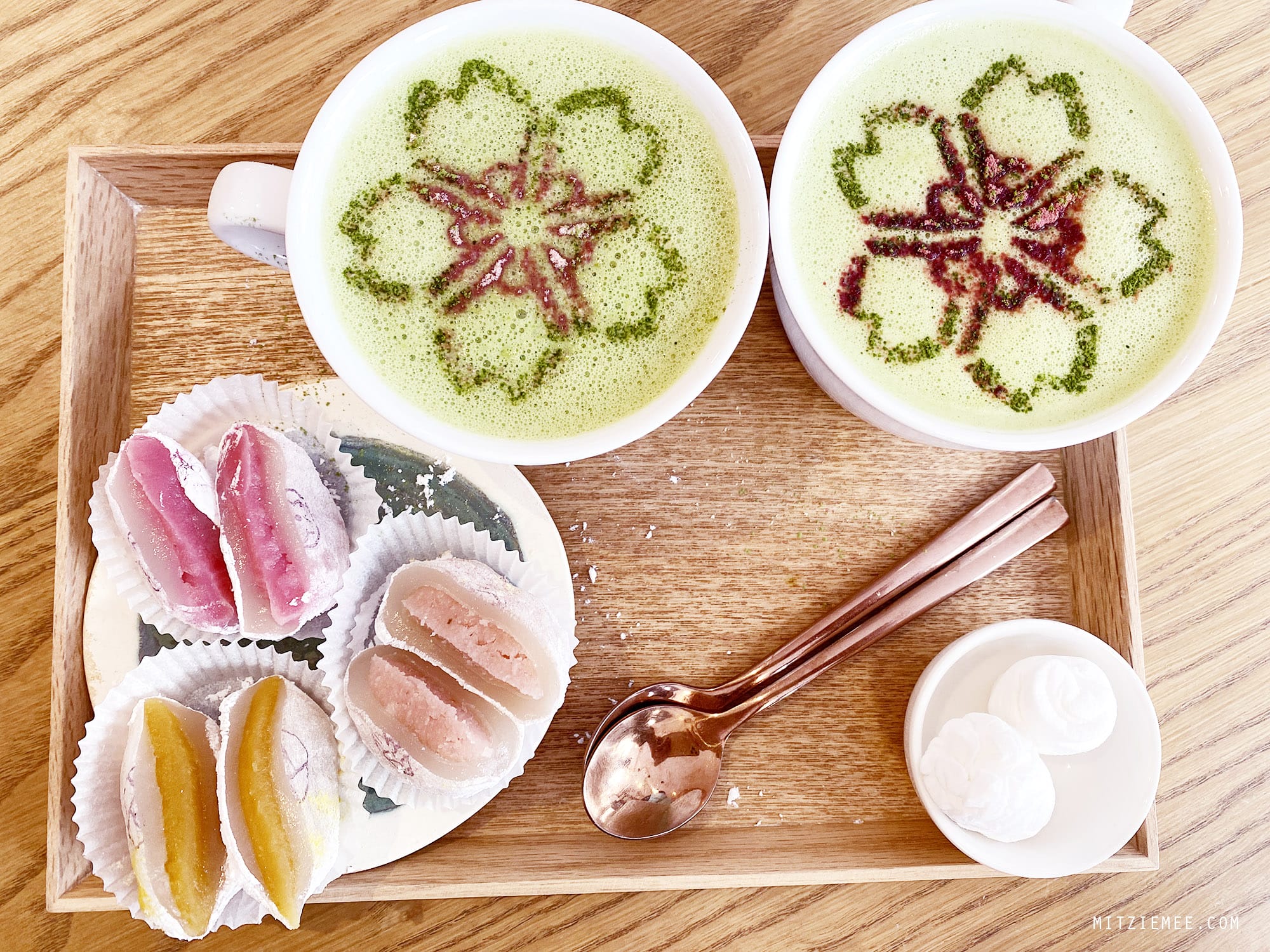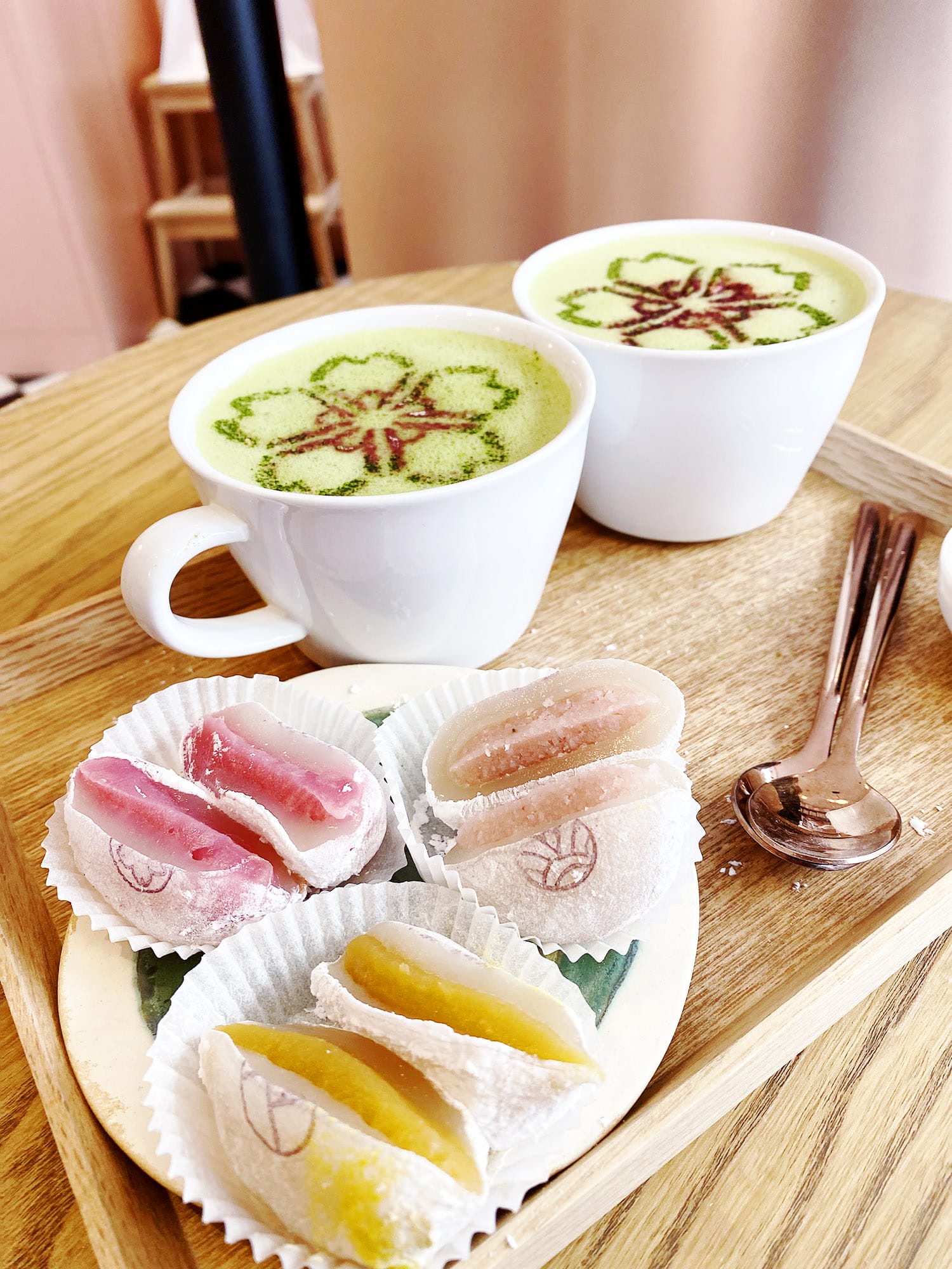 There were many different flavors to choose among, but we already had lunch, so I only got three mochi: Mango, Rose and a monthly special, Sakura Luna, with almond, coconut, and cherry blossoms. The mochi were so soft and delicious with the perfect combination of sweet and chewy, and on par, or even better, than many of the mochi I’ve had in Japan. And the beautiful drink on the side? That’s a Sakura Matcha latte:)
