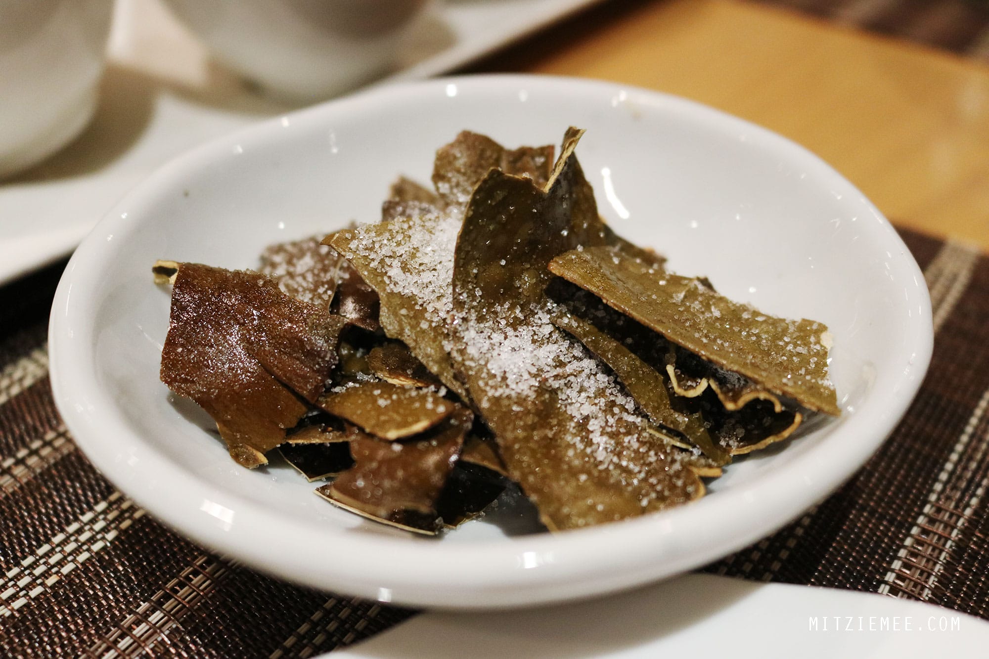 那一晚,Peter的朋友和他的太太在The Sky吃晚餐,我们就和他们一起吃了。我们也不知怎的,聊起了鸡脚,一个在韩国很流行的点心。你首先得把脚里的骨头去除,然后把鸡脚拌入辣椒酱里再拿去炸,而这辣椒酱常常会辣得你大口喘气。 Peter承认他从来没有吃过鸡脚,他的朋友也就马上点了一份让他试试。鸡脚里大部分都是软骨,口感有点像橡胶,但酱汁非常可口。