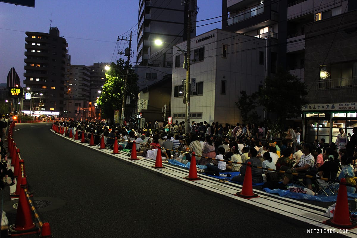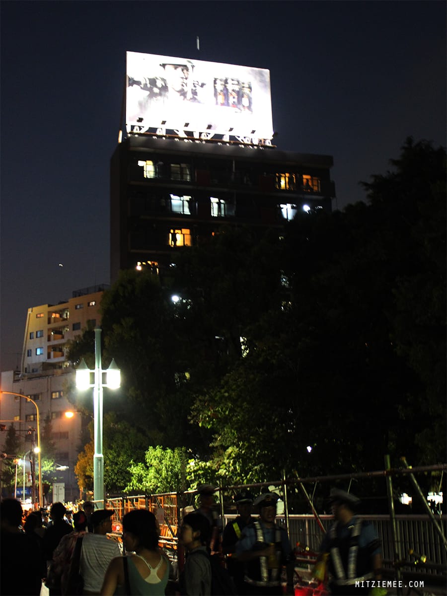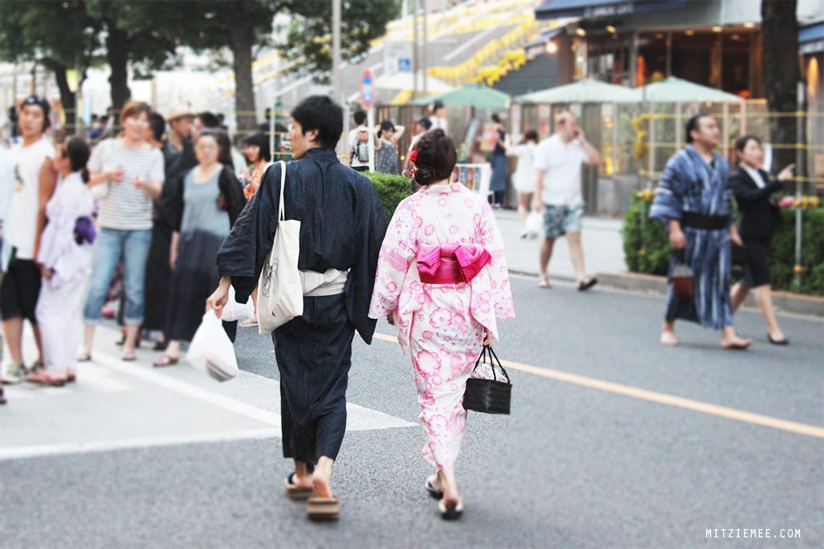People were wearing yukatas, which is traditional, kimono-like dresses made from cotton. You wear the yukata at informal celebrations such as festivals and holidays during the summer. I bought one many years ago, but I’ve never worn it, as it’s quite difficult to dress yourself in it, and I haven’t had any skilled assistance at hand for helping me out. Though, I regretted that I didn’t bring it to Tokyo this time. It would have been perfect to wear last night.