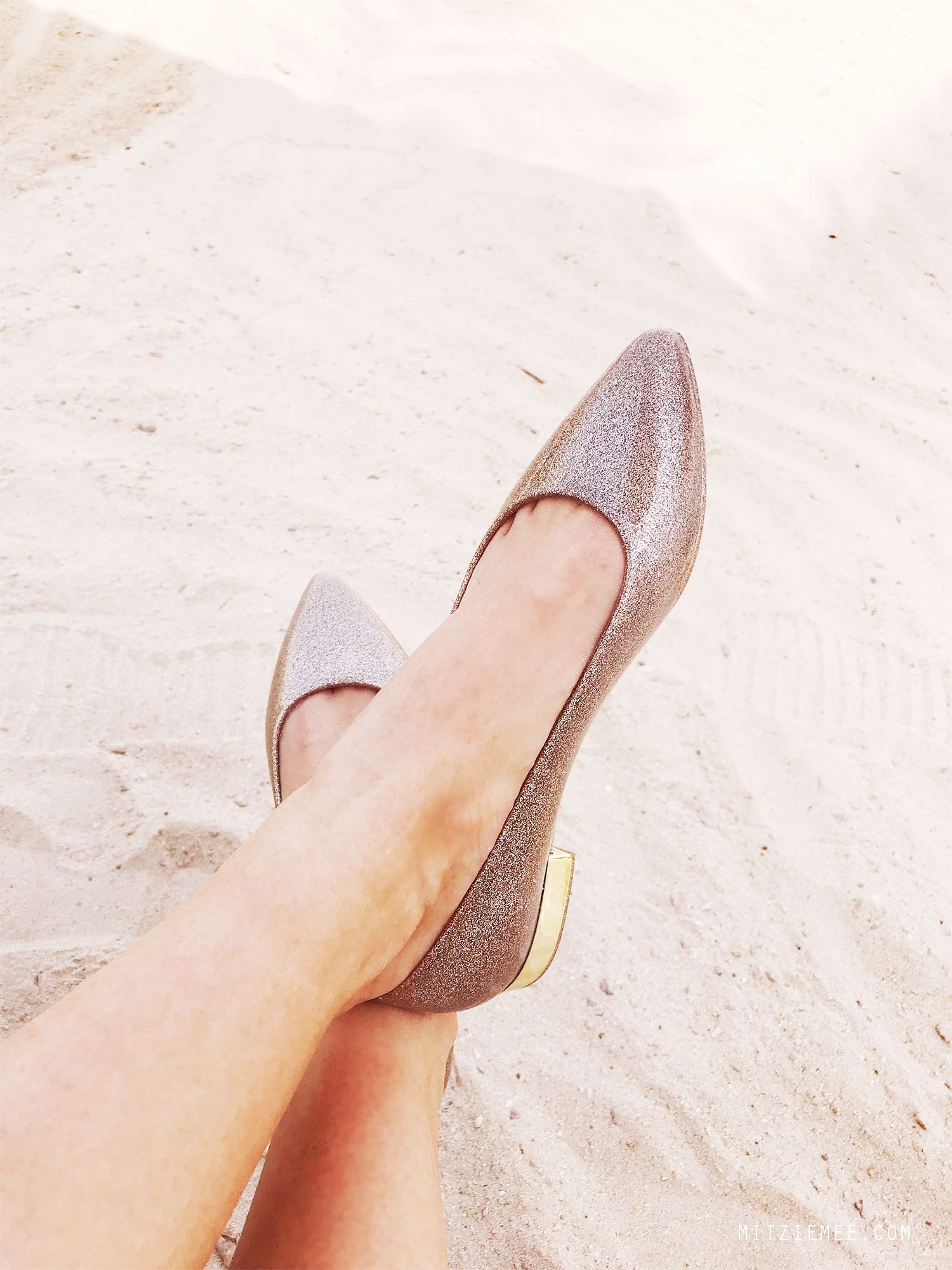 我马上就爱上了他们金色闪烁的那一双鞋,非常适合在迪拜高级的海滩俱乐部穿,但我也买了一双正在促销的粉肉色鞋子,感觉非常好穿。并且,它们好穿得我开始穿着它们去逛超市和办理些日常小事。